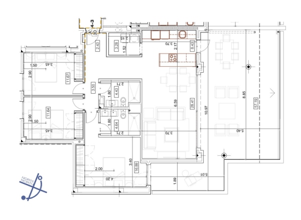 Descripcion:    Moderno apartamento en esquina de 3 dormitorios y 2 baños, con una amplia terraza cubierta orientada al sur con amplias vistas a zona verde.